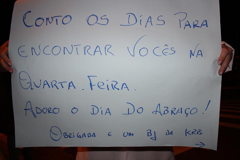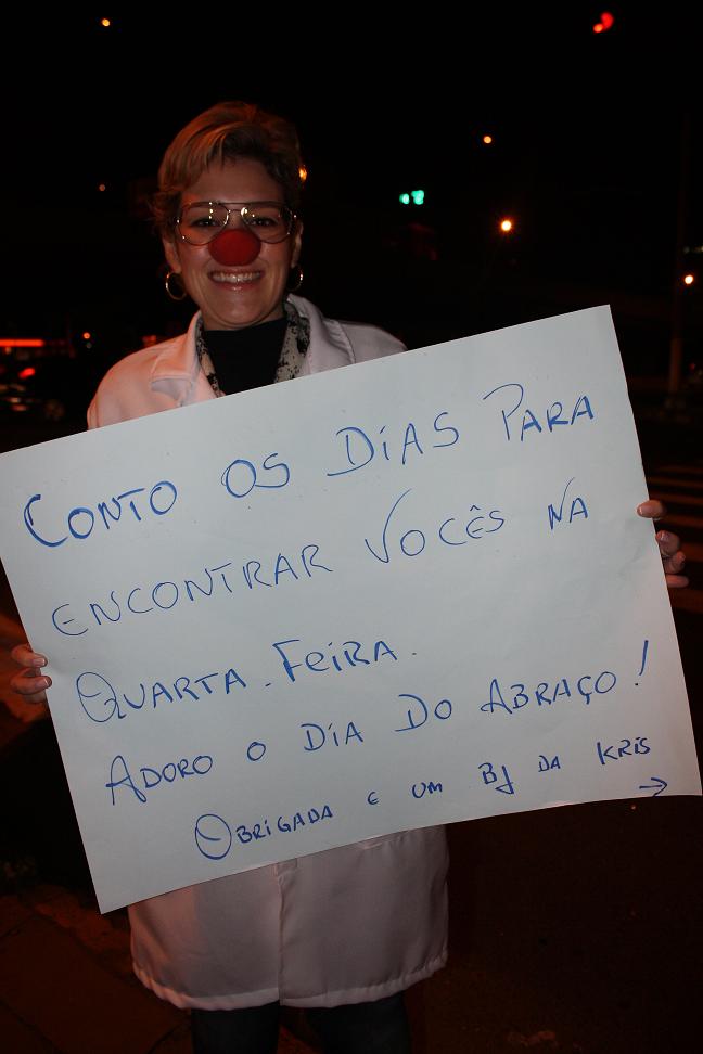 Neste dia, os voluntários foram surpreendidos com mais uma bela demonstração de carinho: uma expectadora-fã do grupo lhes presenteou com um cartaz, elogiando-os e agradecendo pelas apresentações. Em suas palavras: "Conto os dias para encontrar vocês na quarta-feira. Adoro o Dia do Abraço!"