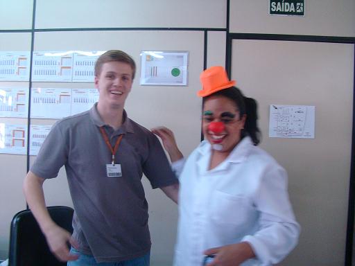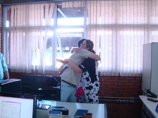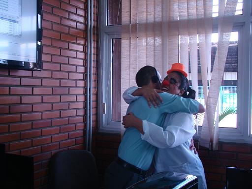 Foi encenado o número do "Abraço Grátis", passando por todos os setores administrativos da empresa.
