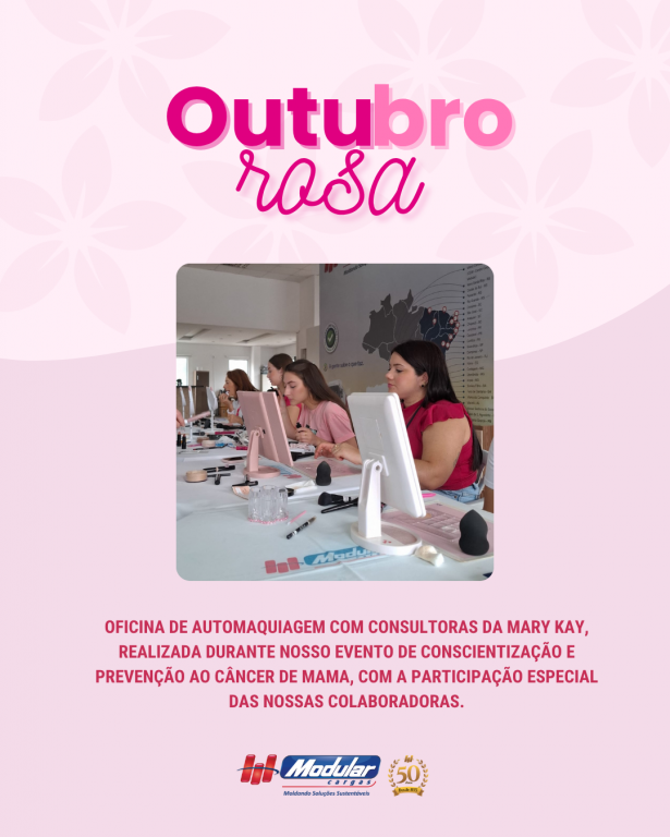 Que tal começar o dia com uma oficina especial oferecida por consultoras da Mary Kay? Foi exatamente assim que as profissionais da Modular Cargas iniciaram sua manhã no dia 17 de outubro. Como parte das ações do Outubro Rosa 2025, a empresa preparou uma programação diferenciada, pensada com carinho para valorizar e fortalecer suas colaboradoras.